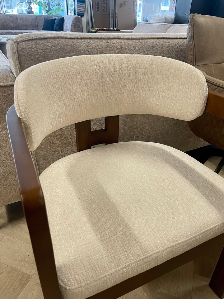 De prachtige japandi style eetkamerstoel Bergamo brown beige.